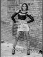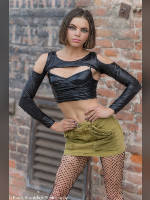 Rachel recently caught my attention by appearing in a local fashion show. She has a very interesting look so I invited her to a group shoot. Good move. Rachel is very high energy, focused, fun, and just plain fun to shoot with. I think she showed up with two suitcases full of outfits for the shoot. Since the shooting sites screamed grunge and dark looks we picked out these outfits that we would get to the others at future shoots.